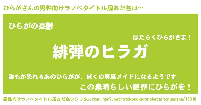 | 胡散臭い通販商品みたいなあだ名 | 『必ず成功するブレスレット…その名も「ひらが」』 |
