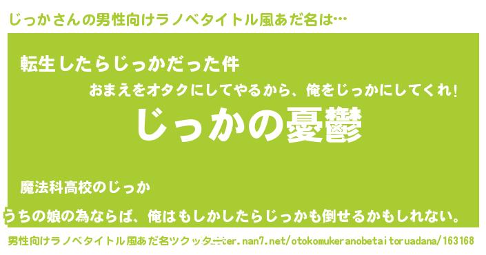 | 胡散臭い通販商品みたいなあだ名 | 『必ず成功するブレスレット…その名も「じっか」』 |