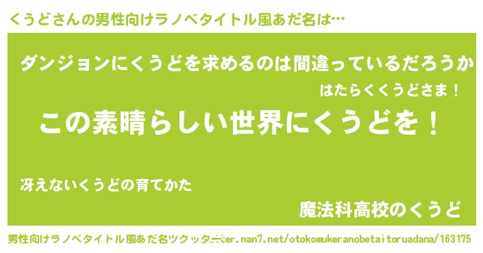 | 胡散臭い通販商品みたいなあだ名 | 『世界中を虜にした100年もののヴィンテージワイン…その名も「くうど」』 |