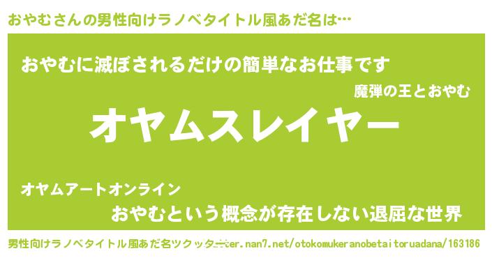 | ヘコむあだ名 | 『おやむ(笑)』『おやもー』 |