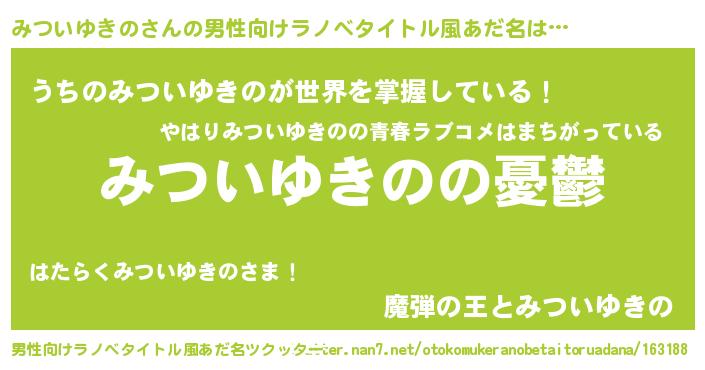 | 女子向けラノベタイトル風あだ名 | 『(仮)みついゆきののやんごとなき事情』 |