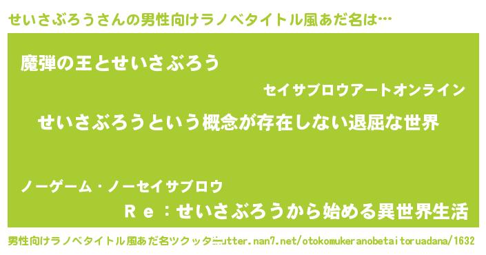 | 意味不明あだ名 | 『永久保存せいさぶろう』 |