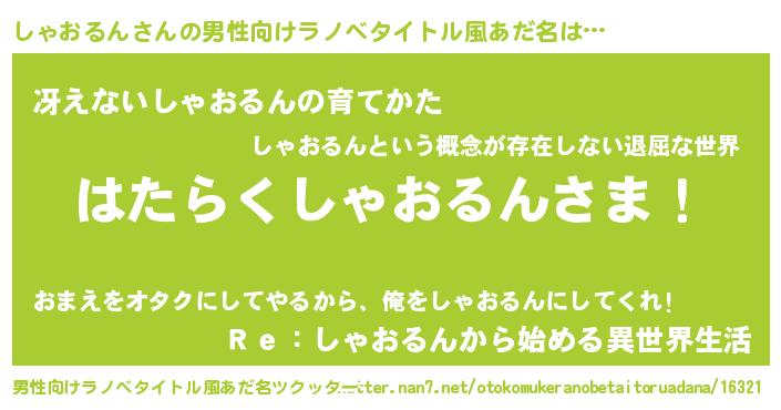 | 意味不明あだ名 | 『自称しゃおるん』『永久保存しゃおるん』 |