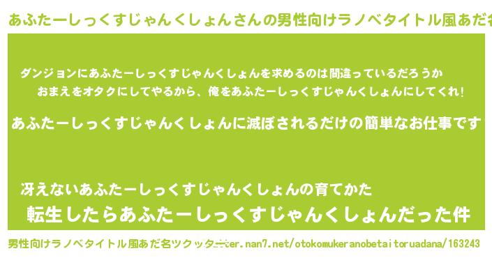 | 胡散臭い通販商品みたいなあだ名 | 『全米が絶賛したサプリメント…その名も「あふたーしっくすじゃんくしょん」』 |