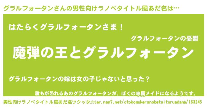 | 意味不明あだ名 | 『住所不定無職グラルフォータン(1歳)』 |
