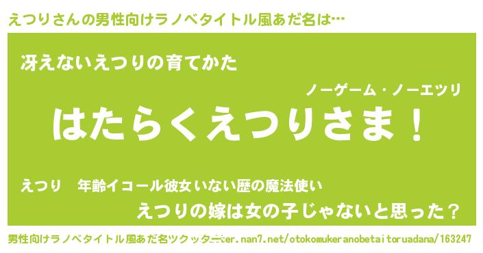 | ヒーロー風カッコイイあだ名 | 『魔戒騎士エツ』『天空の使者えつり』 |