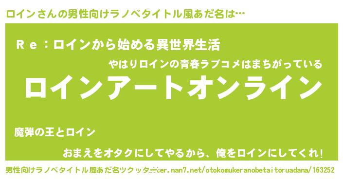 ロインさんの男性向けラノベタイトル風あだ名をツクッター!