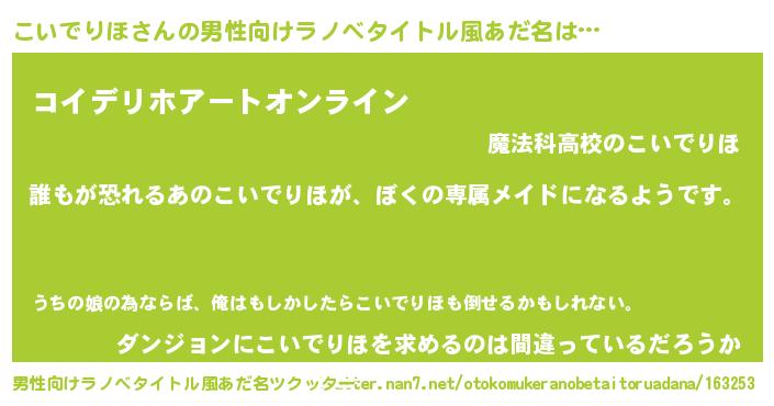 | 女子向けラノベタイトル風あだ名 | 『こいでりほの契約王妃』 |