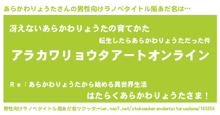| 女子向けラノベタイトル風あだ名 | 『あらかわりょうた姫と円卓の騎士』 |