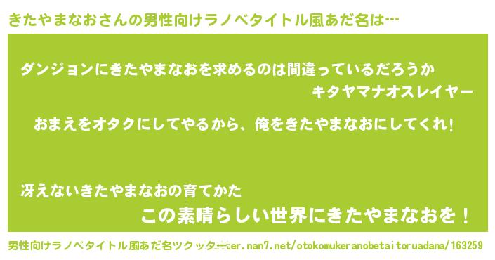 | 女子向けラノベタイトル風あだ名 | 『きたやまなお夫妻のなれそめ』 |