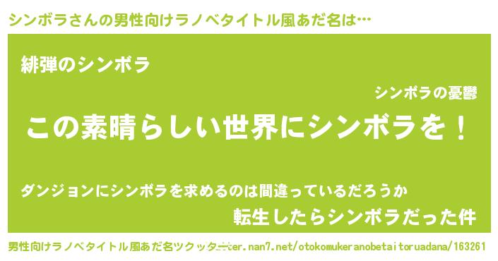 | 女子向けラノベタイトル風あだ名 | 『悪役シンボラに転生したようですが、知った事ではありません』 |