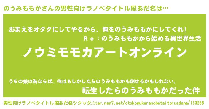 | ヒーロー風カッコイイあだ名 | 『スーパーノウミモモカ』『仮面ノウダー』 |