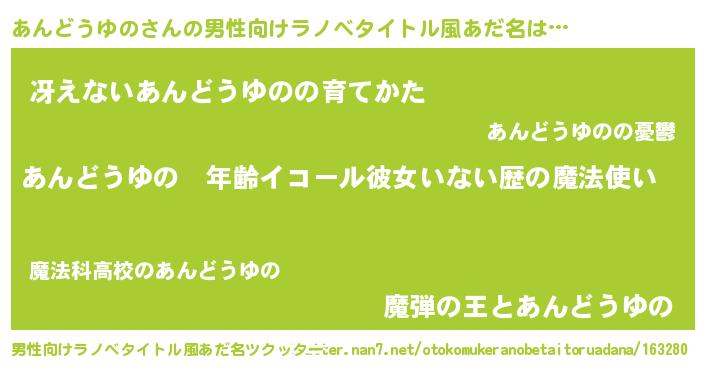 | 女子向けラノベタイトル風あだ名 | 『あんどうゆのの玉の輿計画!』 |