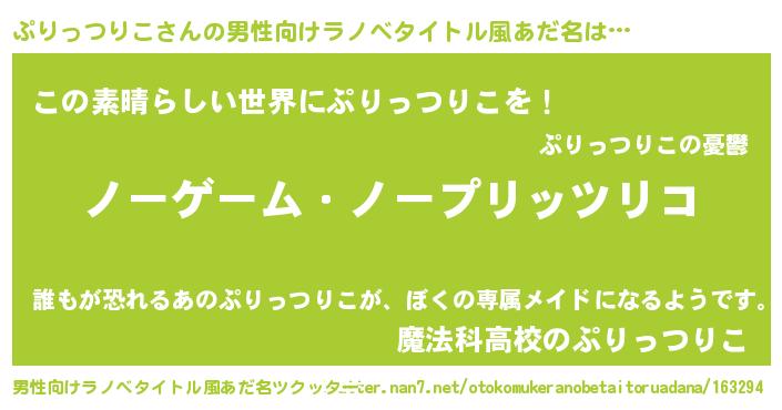 | ヒーロー風カッコイイあだ名 | 『慈愛の使者ぷりっつりこ』 |