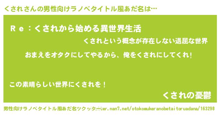 ヘコむあだ名 | 『くさにゅー』『くされ(震え声)』 |