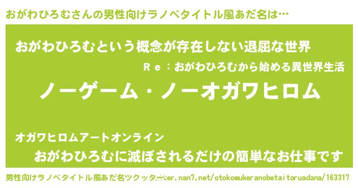 | 伝説のあだ名 | 『救世主となる錬金術士おがわひろむ』 |