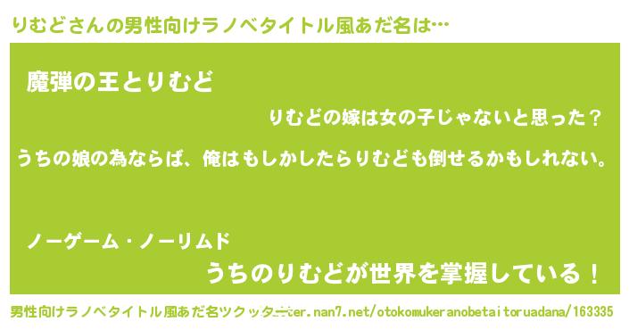 | 女子向けラノベタイトル風あだ名 | 『りむどの婚約者』『りむど恋絵巻』 |