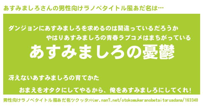| 女子向けラノベタイトル風あだ名 | 『(仮)あすみましろのやんごとなき事情』 |