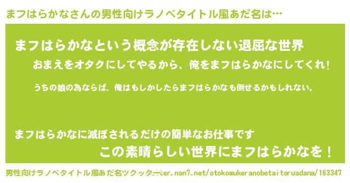 | 女子向けラノベタイトル風あだ名 | 『まフはらかなの婚約者』 |
