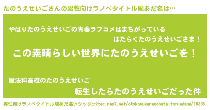 | 女子向けラノベタイトル風あだ名 | 『乙女ゲームの破滅フラグしかない悪役たのうえせいごに転生してしまった…』 |