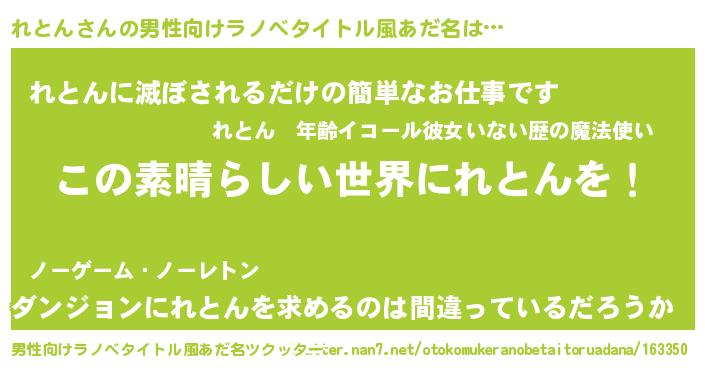 | 女子向けラノベタイトル風あだ名 | 『悪役れとんに転生したようですが、知った事ではありません』 |