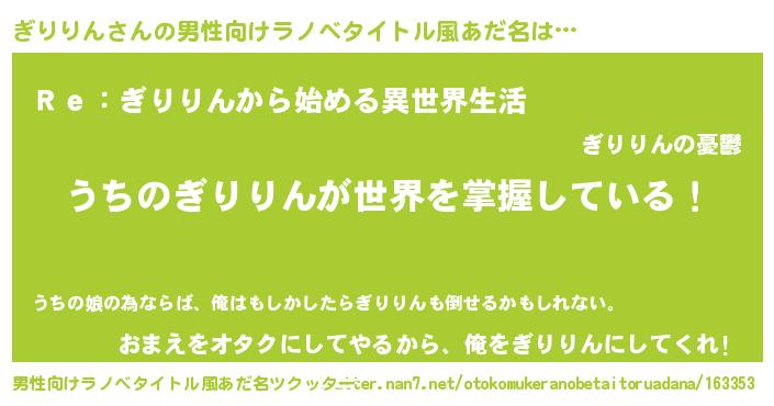 | 意味不明あだ名 | 『自称ぎりりん』『ペロリンぎりりん』 |