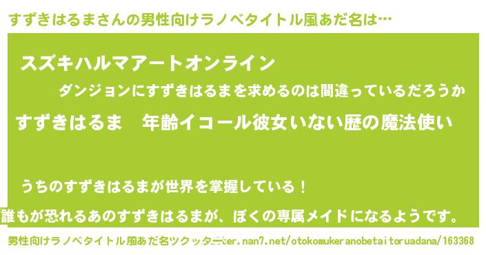 | 女子向けラノベタイトル風あだ名 | 『すずきはるまの玉の輿計画!』 |