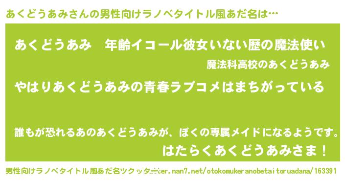 | ファンタジー風あだ名 | 『エターナルアクドウアミー』 |