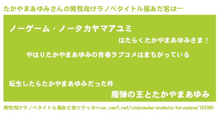 | 女子向けラノベタイトル風あだ名 | 『たかやまあゆみ伯爵の花嫁』 |