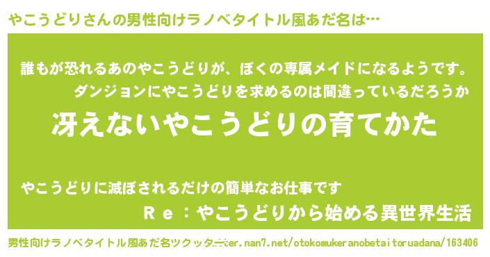 | ヘコむあだ名 | 『やこうどり(小並感)』『やこお』 |