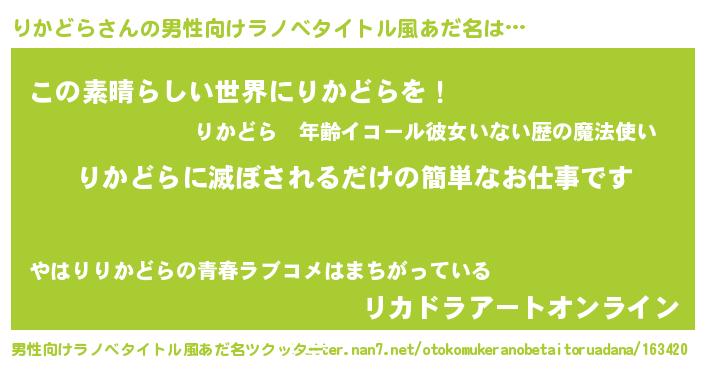 | 胡散臭い通販商品みたいなあだ名 | 『あなたにだけ特別に提供する世界で10本だけ現存している希少なブランデー…その名も「りかどら」』 |