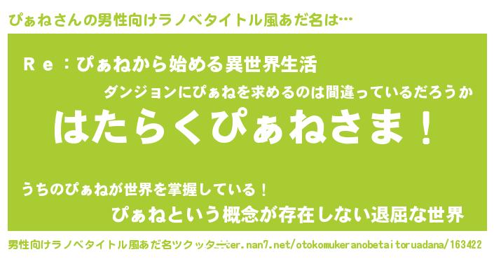 | ヘコむあだ名 | 『ぴぁね(笑)』『ぴぁっ子』 |