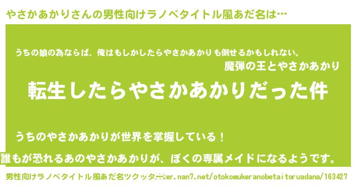 やさかあかりさんの男性向けラノベタイトル風あだ名をツクッター!