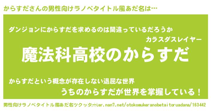 からすださんの男性向けラノベタイトル風あだ名をツクッター!