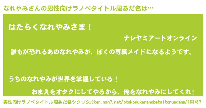 | ヘコむあだ名 | 『なれやみ(爆)』『なれにゅー』 |