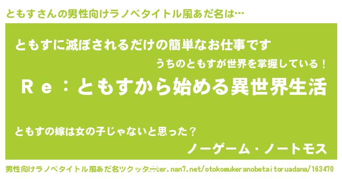 | ヒーロー風カッコイイあだ名 | 『究極戦士トモス』『慈愛の使者ともす』 |
