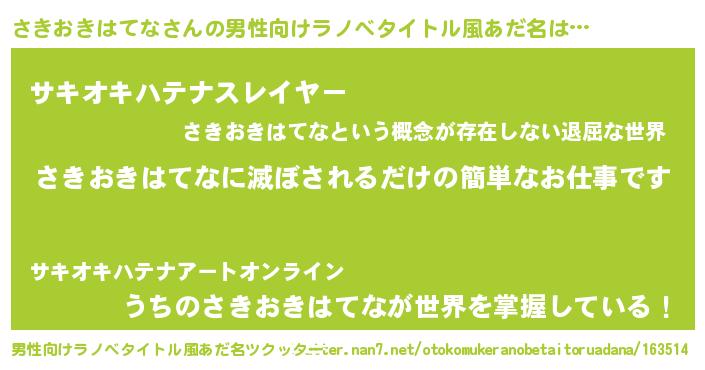 | ヒーロー風カッコイイあだ名 | 『ネオサキオキハテナ』『仮面サキダー』 |