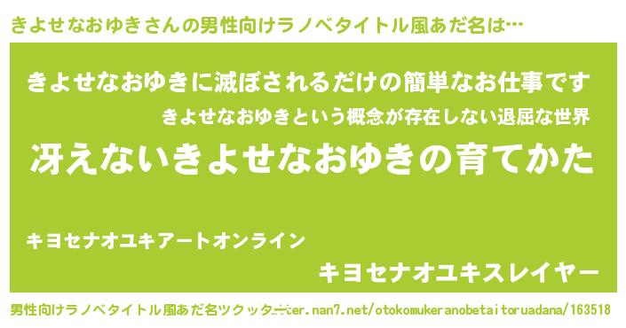 | 女子向けラノベタイトル風あだ名 | 『男装きよせなおゆきの憂鬱な任務』 |