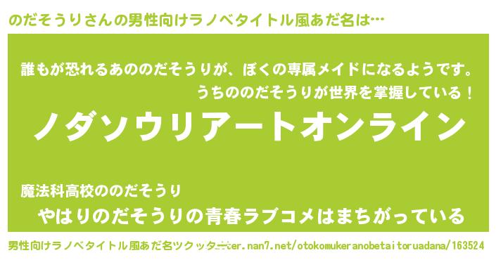 | 女子向けラノベタイトル風あだ名 | 『のだそうり姫と円卓の騎士』 |