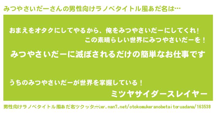| ヒーロー風カッコイイあだ名 | 『慈愛の使者みつやさいだー』 |
