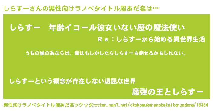 | 女子向けラノベタイトル風あだ名 | 『しらすーの婚約者』 |
