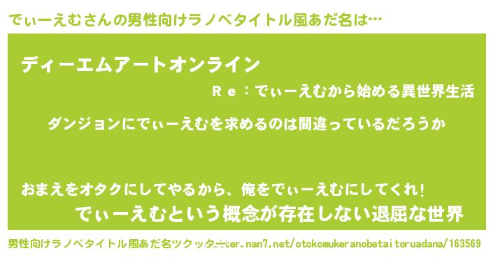 | 伝説のあだ名 | 『孤高の遊び人でぃーえむ』 |