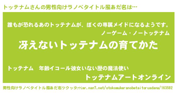 | 胡散臭い通販商品みたいなあだ名 | 『来世でも幸せになれる水素水…その名も「トッテナム」』 |