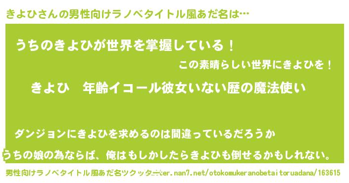 きよひさんの男性向けラノベタイトル風あだ名をツクッター!