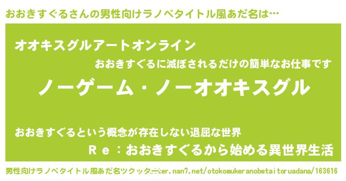 | ヘコむあだ名 | 『おおふぇ~』『おおきすぐる(小並感)』 |