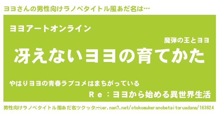 | 女子向けラノベタイトル風あだ名 | 『男装ヨヨの憂鬱な任務』『闇のヨヨ』 |