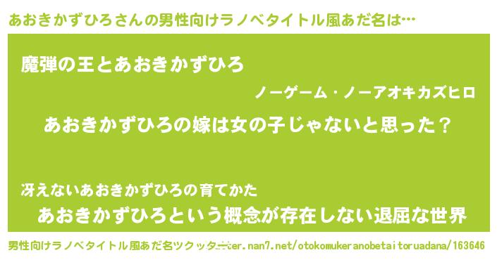 | 女子向けラノベタイトル風あだ名 | 『あおきかずひろ様がみてる』 |