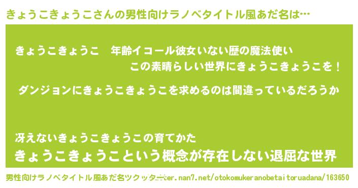 | 女子向けラノベタイトル風あだ名 | 『きょうこきょうこは平凡を望む』 |