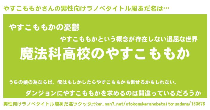 | 女子向けラノベタイトル風あだ名 | 『やすこももかなんてお断りですっ。』 |