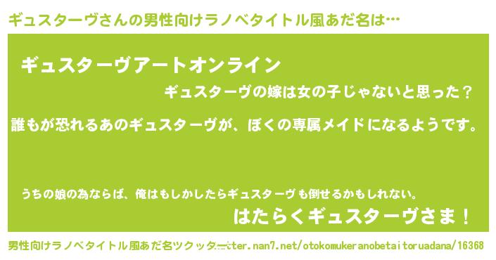 | ヒーロー風カッコイイあだ名 | 『ネオギュスターヴ』『暗黒騎士ギュ』 |